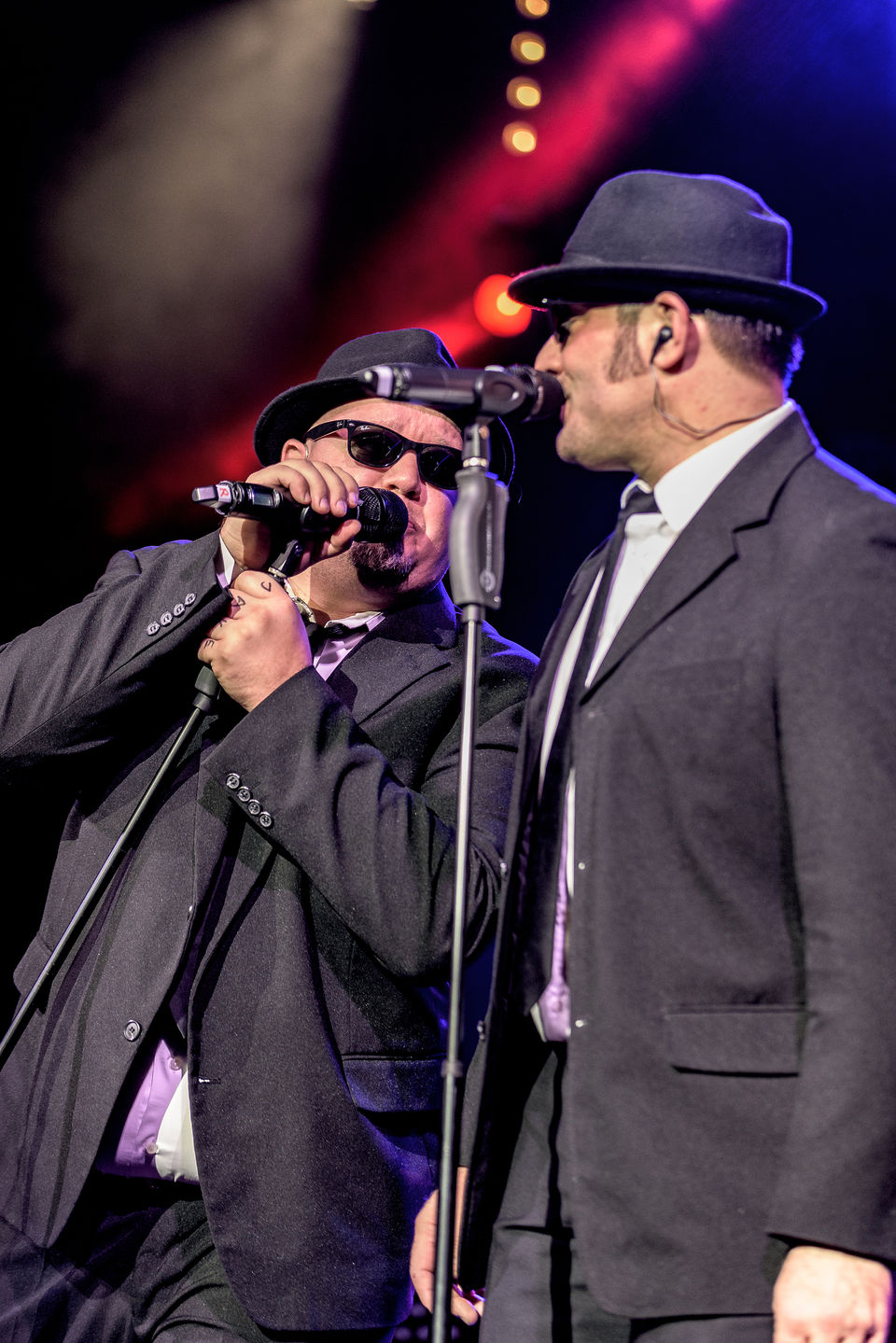 Mit ihrer 11-köpfigen Band versetzen Sie Jake und Elwood Blues zurück in die 80er mit Blues, Rhythm and Blues, Rock, Soul und Funk. Mit dabei Hits wie „Soul Man“, „Gimme Some Lovin“, „Everybody Needs Somebody to Love“ u.v.m..